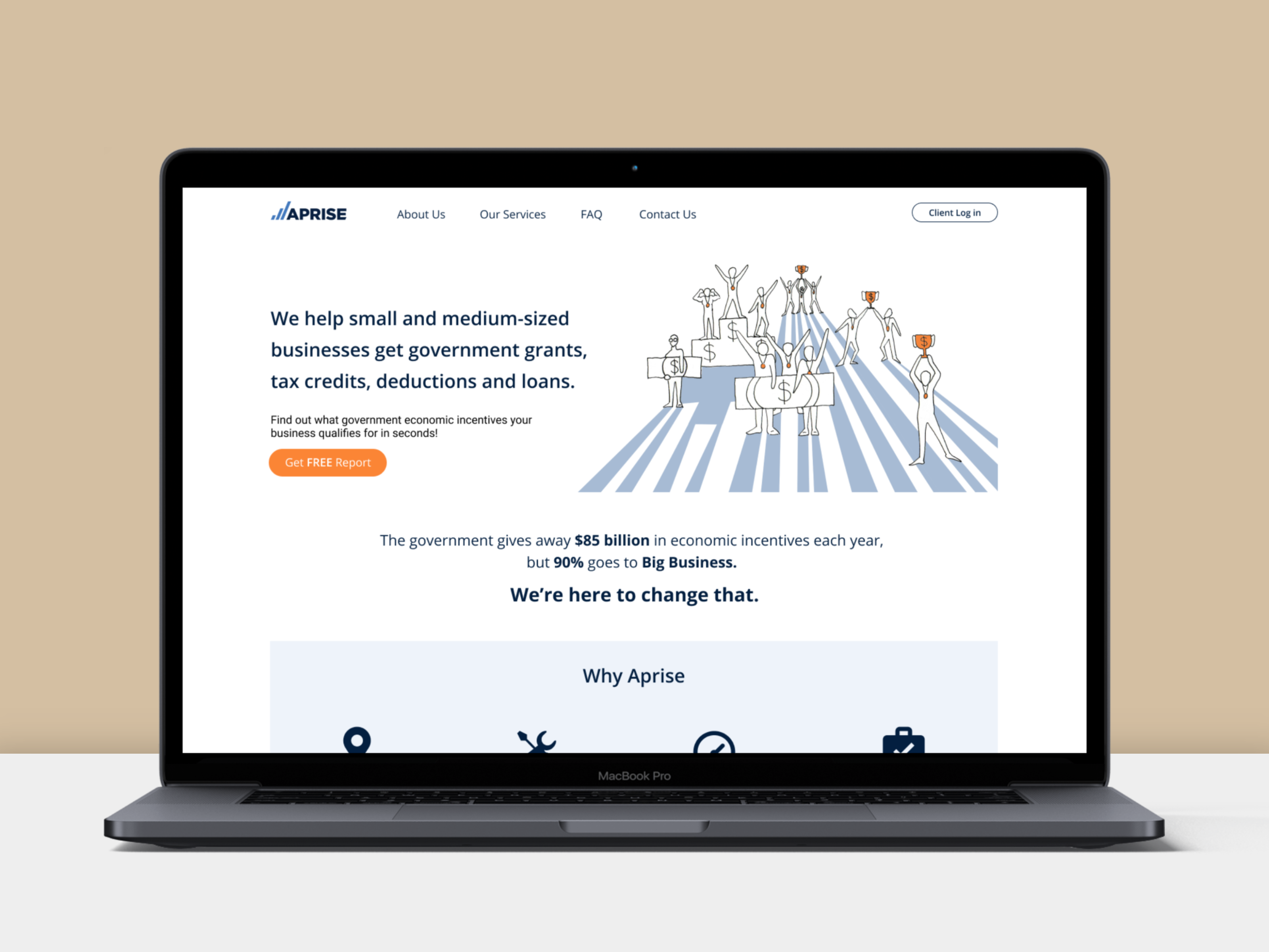 Aprise is a company made to help small and medium businesses find and apply for government economic incentives.